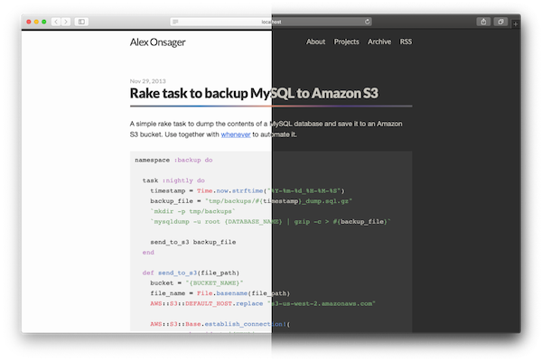 I’ve added Dark Mode support to this site, using code that looks something like this