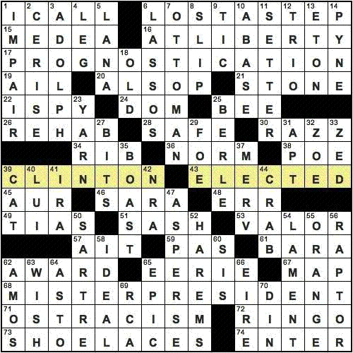 The New York Times crossword puzzle the day before the 1996 presidential election.
