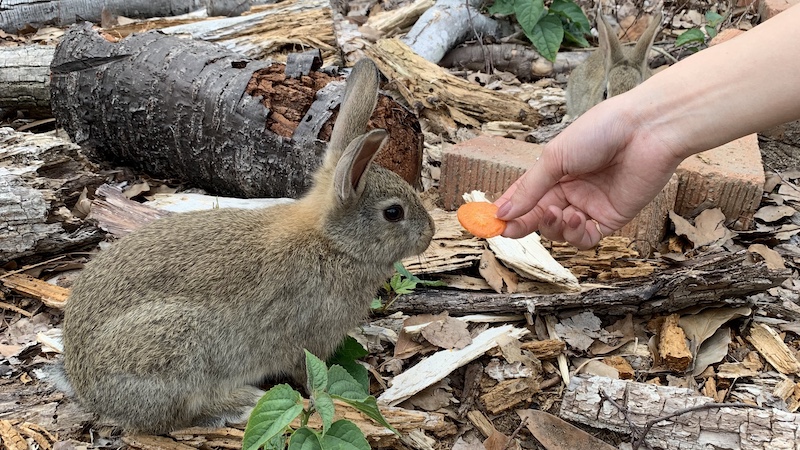 Because the bunnies are so friendly it can be easy to forget that they are wild animals. You should never try to pick one up, and definitely never give them any food meant for people. As long as you remember that you are visiting them in their home, you should be able to spend a lovely day socializing with them.